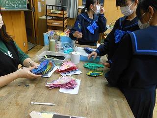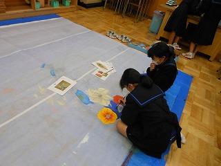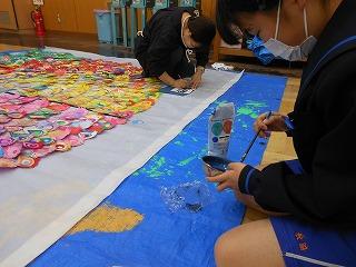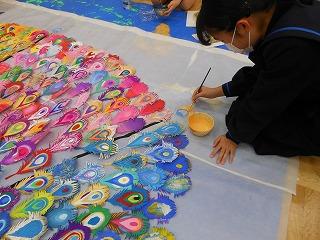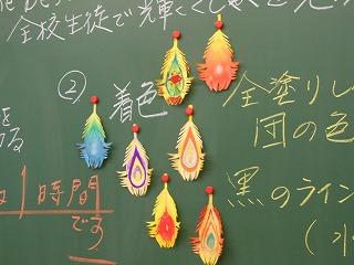 美術部では今週から来週の活動で学校祭の共同制作づくりに取り組んでいます。全校生徒が美術の時間に作成したくじゃくの羽がどんな作品になるのか楽しみですね。美術部の皆さん、よろしくお願いしますね!