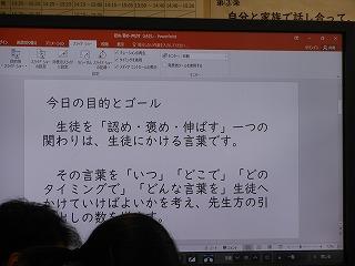 今日の職員会議後に校内OJTを行いました。ベテランの茶谷先生が講師を務め、褒め・認め・伸ばす関わりについて若手の先生方にお話をいただきました。これまでの担任経験をもとに実例を交えた研修でした。授業力・教師力を高めるために、個別に時間を設定して計画的に研修を組み立てています。