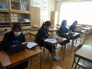 今日・明日の2日間で合唱コンクールのリハーサルを行っています。今日の5限は1年生が、6限は3年生が、明日の4限は2年生のリハーサルです。他クラスの合唱を聞いて、帰りホームの練習にも気合いが入ったようです。本番は来週の木曜日、素敵な歌声が響く校舎です。