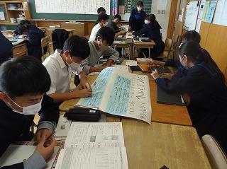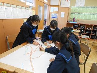 今週末の学校祭に向けての準備が先週金曜日から本格化しています。今日も5限目はグループごとの活動です。各学年が校外学習のまとめ掲示作成に取り組んでいます。