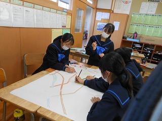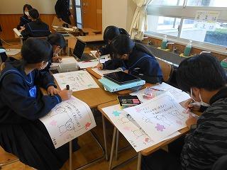 ▽合同制作を美術の時間に行っています。当日はどんな掲示物になるのでしょうか。