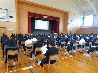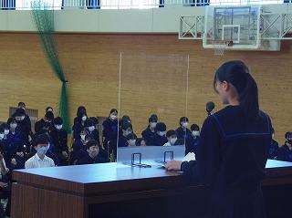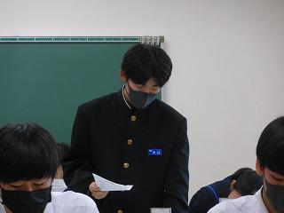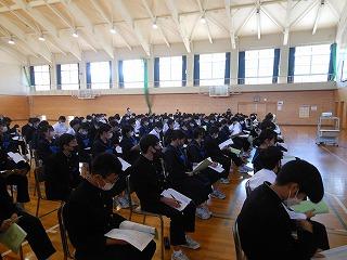 今日は1・2年生が校外学習のため、3年生のみが授業と学年弁論大会という1日でした。