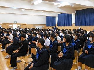 今日から後期!学級活動や生徒会活動が新しいメンバーによって始まりました。職員室にある出席簿を取りにくる副会長も緊張した面持ちでした。各クラスでは新会長が号令の挨拶です。初めて学級のリーダーになった生徒も半数を越えており、やる気が感じられました。どの生徒も早く自分の役割に慣れよう、学級や学校のために貢献しようという気持ちがあふれる初日、すがすがしい1日でした。