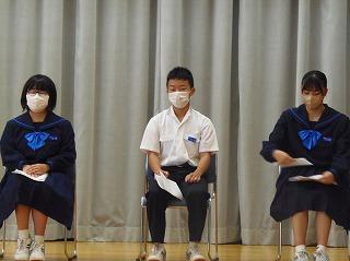 昨日放課後には後期最初の生徒議会を行いました。開会の挨拶に続き、自己紹介。議長・副議長選出の後、報告事項として各委員会の報告と学校祭の内容について確認がありました。意見交換では、冬服に移行するにしたがって名札の付け忘れが目立ってきており、各クラスで呼びかけようとの意見がありました。今日の給食時の生徒会からの連絡で早速全校生徒にお知らせがありました。