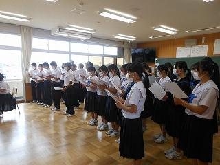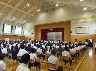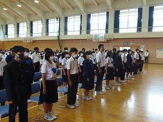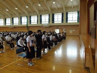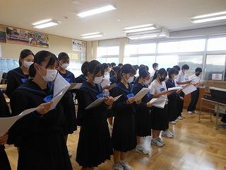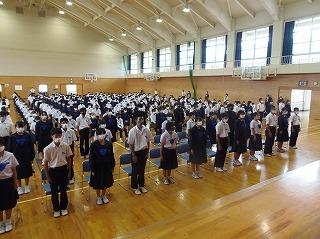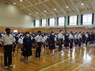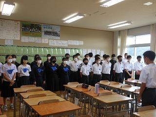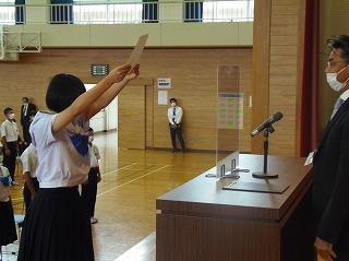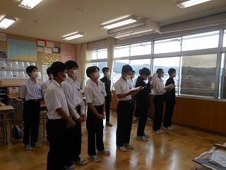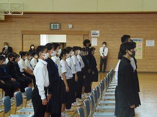昨日の6限目に、後期生徒会役員・学級役員の任命式を行いました。生徒会担当の廣瀨先生の呼名に対して、3年生を中心に立派な返事で応えてくれ、大変引き締まった雰囲気の式となりました。あの3年生の姿や青木生徒会長の演説を聞きながら、下級生が憧れのまなざしで見つめる姿が印象的でした。