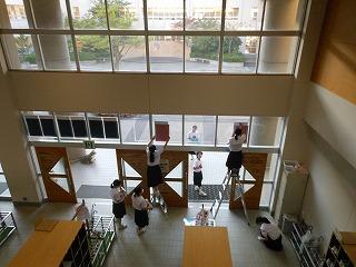 生徒玄関上の「元気なあいさつ 津幡南中学校」の掲示を美術部の1年生の皆さんが制作してくれました。平成27年度から7年ぶりのリニューアルです。29日の部活動で部員が協力しながら掲示し、30日から生徒の登下校を見守ってくれています。美術部の皆さん、ありがとうございます!