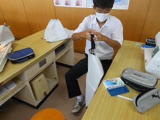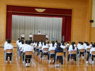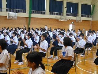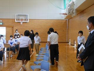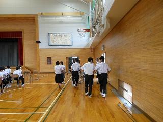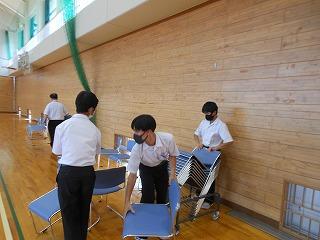 今回の集会から先生方も椅子に座り、集会に参加することとなりました。先生方の椅子を3年1・2組の生徒が整えてくれました。ありがとうございます。
