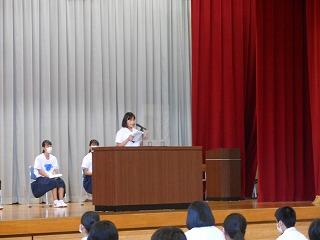 最後に生徒会タイムでは後期執行部・委員長の4名が発表しました。