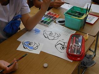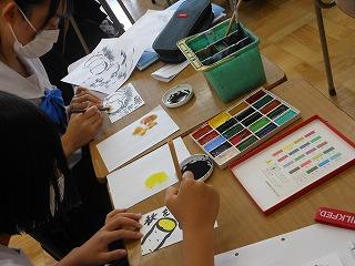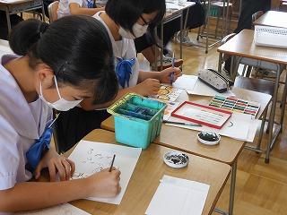3年生は「印象に残る絵手紙を描くポイントとは」の課題から実際に描く作業に入りました。一人ひとりの工夫がある絵手紙は後日校内に掲示されます。