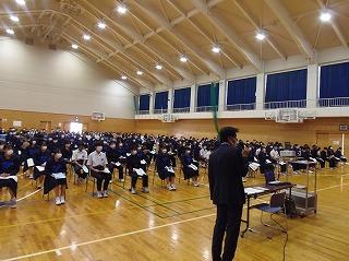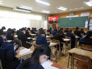 先週金曜日の午後に、第2回進路説明会を行いました。いよいよ卒業後の進路に向けて、手続きも本格化します。お子様の進路実現に向けて、保護者の皆様にお願いすることも多くなりますので、配付資料や進路通信を確認の上、よろしくお願いします。明日には、第3回進路希望調査と住所確認書、第2回河北郡市統一テストの成績通知票を配付します。