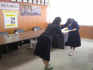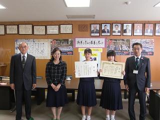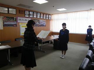 表彰式当日欠席した生徒には、後日、本校で表彰式を実施いただきました。吉田克也津幡町教育長様にも同席いただきました。
