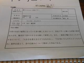 今週は本校で河北郡市中学校科学作品展を職員室前で開催しています。本校からも優良賞に入った生徒の作品が出品されています。