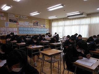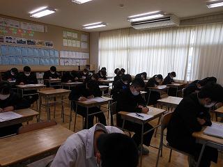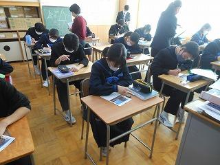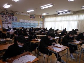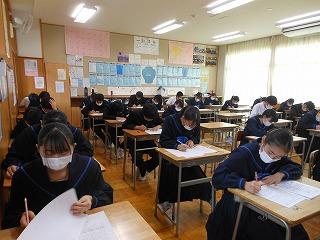 今日の6限目は3年生のみ技術・家庭のテストを行いました。明日は全学年で5教科のテストです。