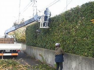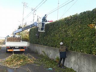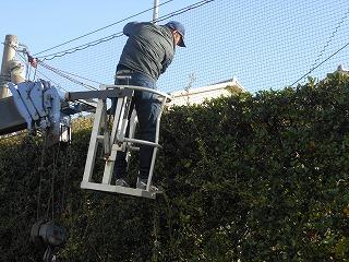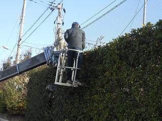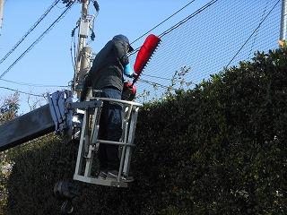 PTA環境部の今年度最後の事業として、校地周りの垣根の整備を専門の業者にお願いし、進めています。今日は朝方まで雨が残りましたが、晴れ間を見て、きれいに整えていただきました。