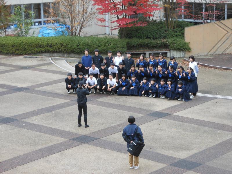 ▽昼休みにはステージで卒業アルバム用の学級写真を撮っています。