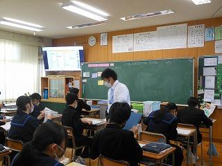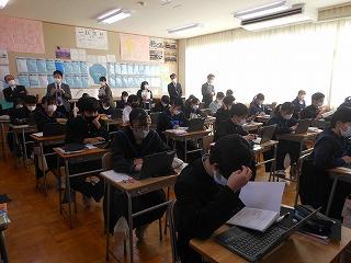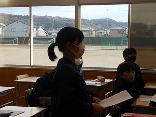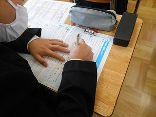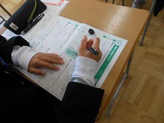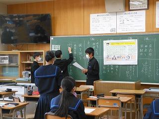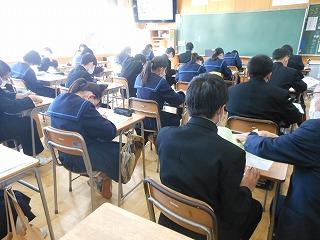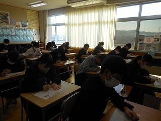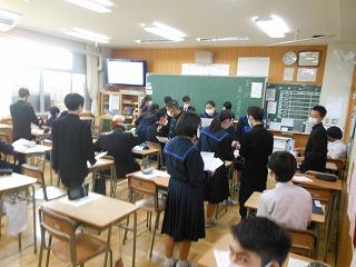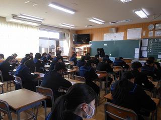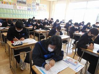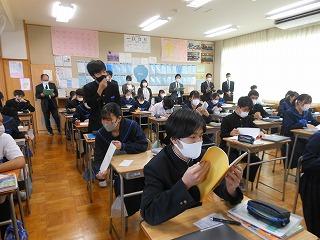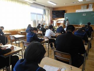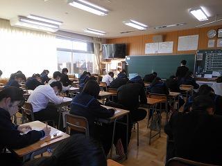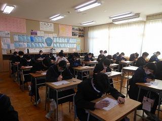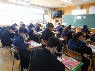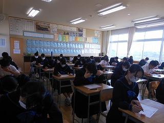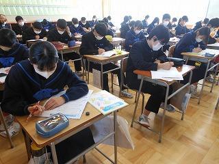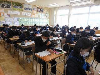 今日は2学期期末テスト1週間前。朝は11月の英単語テストからスタートしました。3年生は午後から進路説明会もあり、やはり緊張感が教室に感じられます。