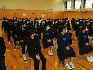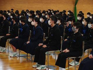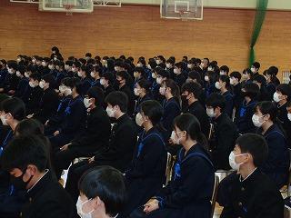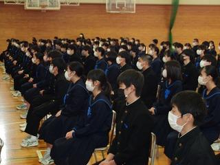 今日4限目に2年生は集会で立志式について学びました。2月1日に津幡町文化会館シグナスで立志式を迎える2年生。立志とは自分の将来について考え、目標を定め、それを成し遂げようと志す節目の時です。学年主任の永下先生のお話を聞き、これまでを振り返り、今後について考えている姿が印象的でした。