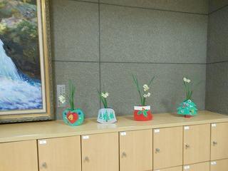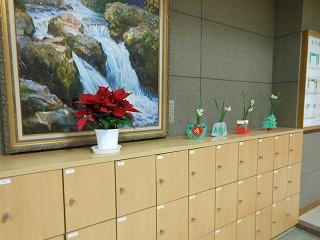 ▽職員玄関には学校評議員の中西様よりいただいたお花がお客様を迎えています。