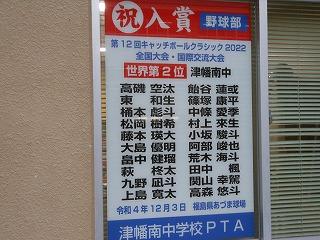 ▽職員玄関横には、先日の野球部のCBC世界2位を祝う掲示がされました。PTAの皆様、ありがとうございます。