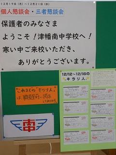 今日から3日間午後に1・2年生は通知表渡し、3年生はPTCA(三者面談)を行います。今日は昨日からの雪が昼頃まで降り続きましたが、ようやく小康状態となったようです。廊下でお待ちいただく際も気温が低くなっていますので、防寒対策のうえ、ご来校ください。お待ちしております。