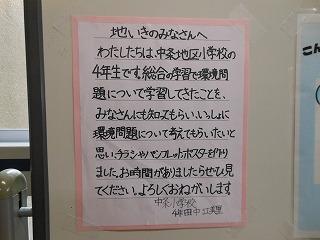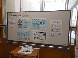 先日、中条小学校の4年生が総合的な学習の時間に調べまとめた環境学習のスライド資料を中学校に届けてくれました。通知表渡し・PTCAの際に、校区の皆様にも見ていただければと、届けてくれたスライド資料と配付資料を展示ホール横に展示しています。小学校4年生が一生懸命調べた成果もぜひご覧いただき、配付資料をもとにご家庭でもお話を深めていただければと思います。