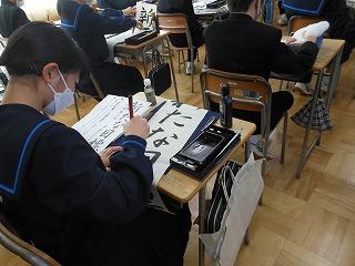中学校には書き初め大会がなく、書き初めは冬休みの課題となります。各学年の国語では2学期2回目の書写の学習に取り組んでいます。課題は以下の通りです。