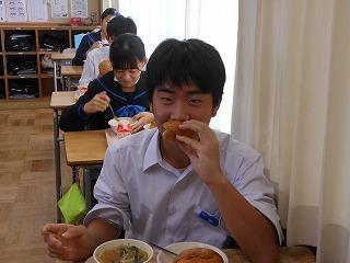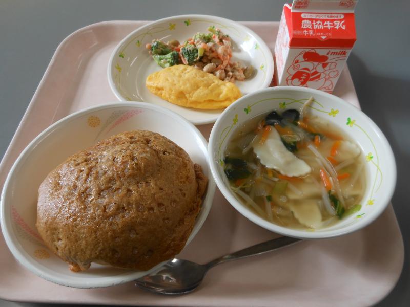 今日は調理員さんの手作りキャラメルパン。オムレツ、ツナビーンズサラダ、ラビオリスープとともにおいしくいただきました。調理員さん、ありがとうございます!