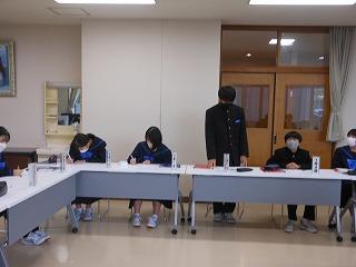 今日は放課後に後期第3回生徒議会を行いました。各委員会の報告に続いて、赤い羽根共同募金活動の結果報告、2月の生徒議会の予告がありました。意見交換では、給食後の歯みがきの様子や登下校中の態度、体育の着替えについて、意見があり、閉会の挨拶で青木生徒会長から各クラスで呼びかけることの確認を行いました。
