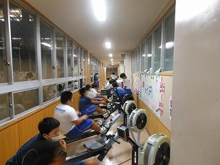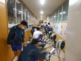 ボート部は今年度の屋外での大会が終了し、冬場は体力強化にあたっています。活動もローイングマシンでタイムを計りながら、目標距離をいかに短時間で達成できるか部員で競っています。今月は小松市で、来月は本校体育館でインドアローイング大会が開かれます。1月の県大会を突破し、全国大会への出場権をつかみたいですね。