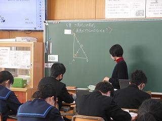 2学期の授業も今日を入れて8日間。終業式の23日は授業がないため、どの教科も今学習している単元のまとめ・ゴールに向けて、学びを深めています。数学は図形分野に入り、対頂角や平行、合同などの数学用語や証明の問題に頭を悩ましながら挑んでいます。