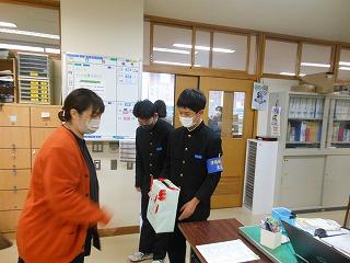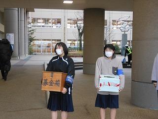 昨日の放課後4時30分から、町内の商業施設「PLANT-3」津幡店前で本校生徒会の5名が赤い羽根共同募金活動を行いました。夕方買い物に訪れた多くの皆様から募金をいただきました。ご寄付いただき、ありがとうございました。