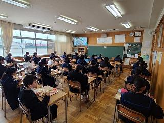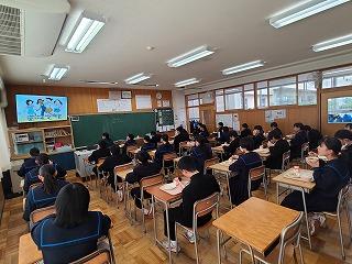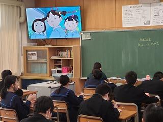 今年度は12月4日から10日まで人権週間です。また12月10日は人権デーとなっています。本校では日頃より人権教育の目標にそって、様々な教育活動を進めていますが、今年度は全国中学生人権作文コンテストの入賞作品をアニメ化した動画を各教室に配信し、今一度、自分の大切さとともに他の人の大切さを認める意識・態度の育成を図ります。第1回目の今日は「差別のない世界へ」を視聴しました。