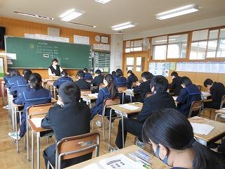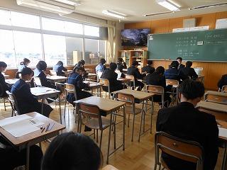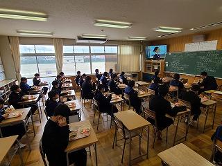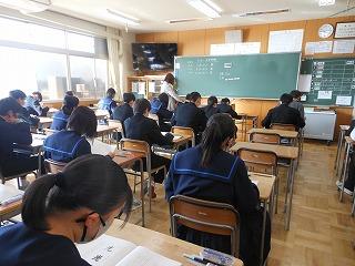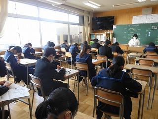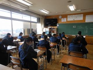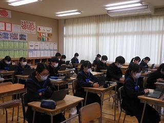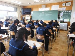 今日は2年生が午前中3時間、国語・数学・英語の3教科で町学力実態調査に臨んでいます。これまでの学習内容のまとめであり、自分の力がどれくらいついているかの腕試しです。