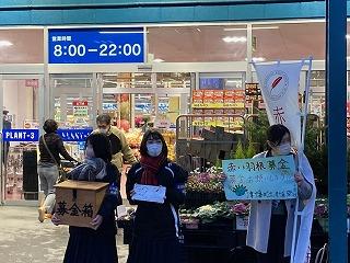 月曜日に続いて、昨日も生徒会執行部のメンバーが「PLANT-3」様にて募金活動を行いました。昨日も多くの皆様のご協力を得ることができました。ありがとうございました。