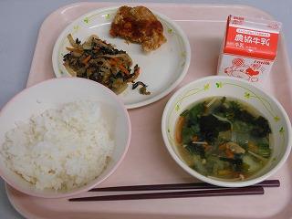今日の給食は韓国料理。メニューに合わせて、給食委員会のお知らせと文化委員会のお知らせがありました。文化委員会では年中行事や給食のメニューに関連させて、行事の意味や各国の食文化について放送をしています。