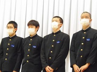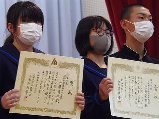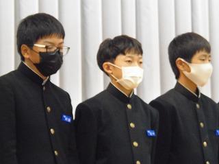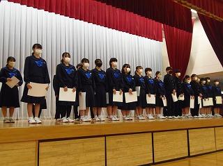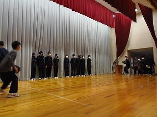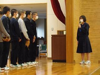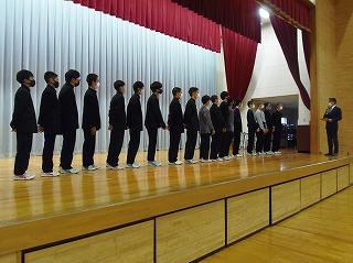 昨日は水曜日で5限であったため、6限目に12月の全校集会を行いました。2・3年生は体育館で、1年生は卓球場で2ヶ所に分かれて、表彰披露に続いて、永井校長先生からは、人権週間にあたっての講話がありました。続いて、茶谷先生から生活目標の話、岡本先生から学習目標の話を聞き、2学期残り17日間のめあてをもちました。