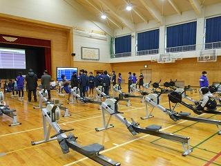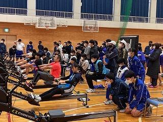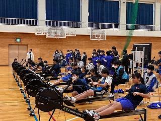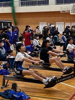 ボート部は本日、本校体育館で開催されている令和4年度全国インドアローイング大会石川県大会に出場しています。県内外から年齢を問わず選手が集合し、時間ごとに2000mのタイムを競っています。冬場の練習の成果を確認する絶好の機会です。結果は明日の歳時記でお知らせします。
