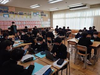 2月1日の「働く人に学ぶ会」に向けて、先週から1年生の準備が始まりました。12名の講師の先生方を迎え、当日は6グループに分かれ、前半・後半の2回、講師の先生のお話を聞きます。希望アンケートをもとに分かれた6グループごとに司会者や書記、ご案内の係分担を行いました。