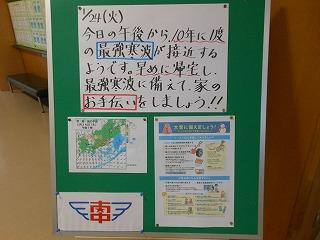 なお、今後の積雪の状況により、ご家庭の判断で明日の登校を見合わせる場合は欠席ではなく出席停止扱いとしますので、その際は学校への連絡をお願いします。