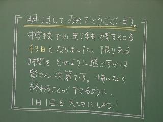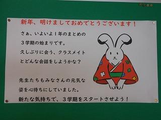 3連休も今日で終わり、明日から3学期です。校内も3学期を迎える準備が整っています。皆さんも初日の提出物を確認して、明日を迎えましょう。