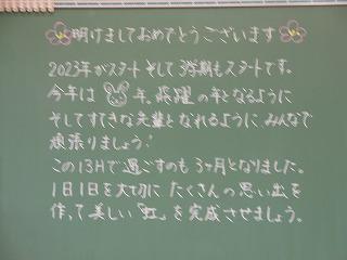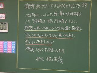 令和5年(2023年)がスタートしました。多くの部活動が今日から再開し、生徒たちの元気な声が戻ってきました。冬休みは9日までありますので、残り5日。3学期始業式には、身だしなみを整え、提出物も忘れずに登校できるように準備しましょう。