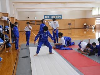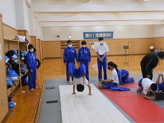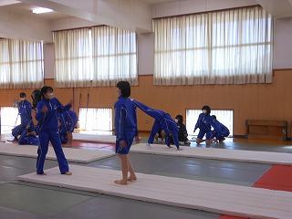 保健体育の授業は1・2年生がバスケットボール・マット運動、3年生はバスケットボール・卓球に行っています。授業も後半に入り、バスケットボールはゲーム練習、マットは自分の演技の組み立てに取り組んでいます。