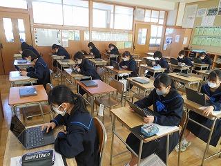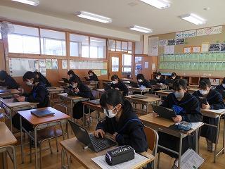 2023年2月28日 17時51分2年生では今日の午後、学年一斉で英語の調査を行いました。英語の「話すこと」調査です。Chromebookで出題される問題に各自が英語が解答しました。(調査はクラスを半分に分け、実施しました。)