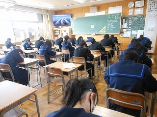 2023年2月12日 07時05分3年生は先週金曜日に3学期期末テストが終わりましたが、1・2年生は来週末の24日(金)にテストを行います。今週末の金曜日から諸活動禁止になります。