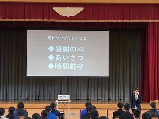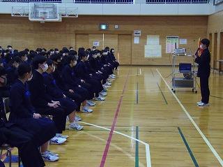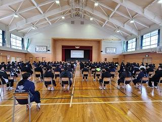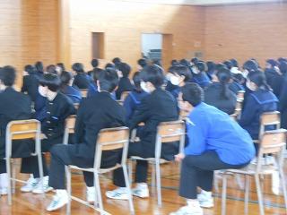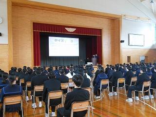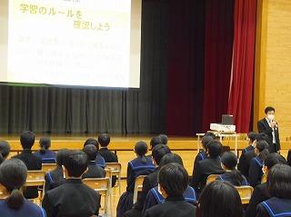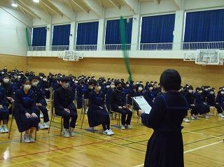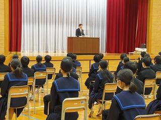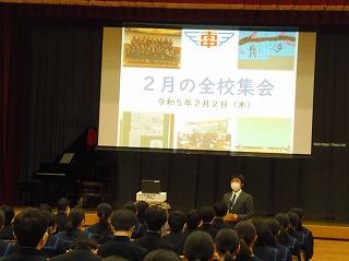 今日は木曜日でしたが、水曜時間割で授業を行い、6限目に全校集会を行いました。