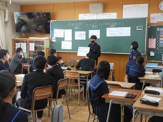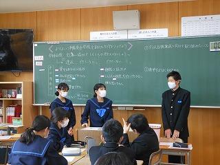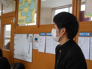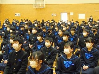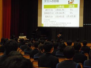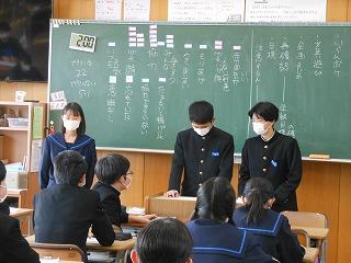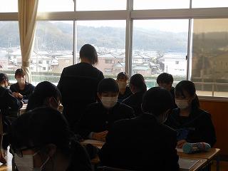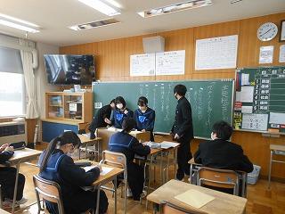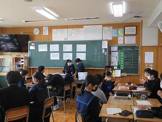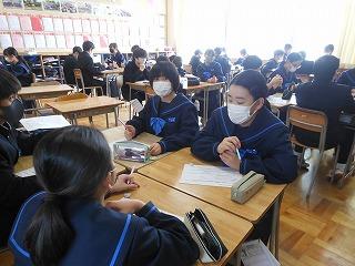 先週は立志式や働く人に学ぶ会、私立高校一般入試、公立高校推薦入試と節目となる行事が多い1週間でしたが、今週は通常の時間割通りの落ち着いた1週間です。ただし、3年生は卒業証書授与式まで1ヶ月あまりとなり、金曜日には3学期期末テストを迎えます。