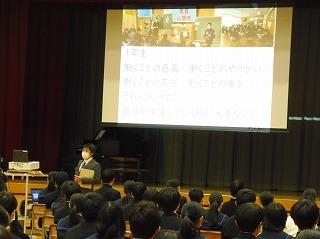 2月1日に「働く人に学ぶ会」を終えた1年生は、いよいよ来年度5月に職場体験学習に取り組みます。3年ぶりの体験学習ですが、46ヶ所の事業所の皆様にご協力いただき、行うことが可能となりました。生徒たちにとって、実際に働く経験は将来の進路選択にとっても大変貴重なものです。実り多い活動となりますよう、よろしくお願いいたします。