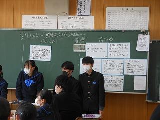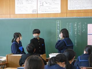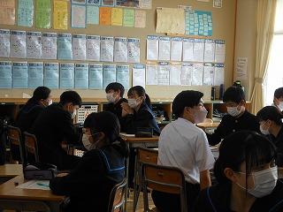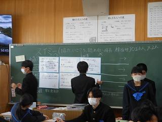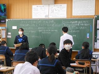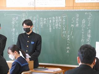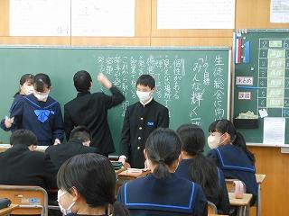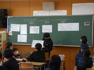 昨日の午後は各クラスで後期生徒総会に向けての学活を行いました。テーマ「よりよい津幡南中学校を自分たちで作り上げよう」に基づいて、各クラスの学級目標の達成度と、残りの学級での生活で達成度を高めるためにはどんなことが必要かを考えました。考えた取組は2月15日の生徒総会で各クラスの代表が発表します。