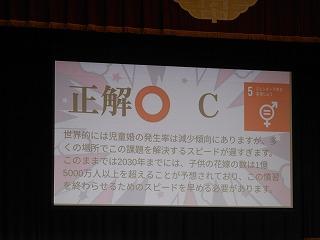12月に2年生にお知らせした令和5年度修学旅行。来年度5月10日~12日に関西方面に出かけます。学年の修学旅行実行委員会のメンバーも旅行を充実させるために、様々な取組を進めています。先週金曜日の集会では、目的の一つであるSDGsについて理解を深めるために、クイズ形式で学習しました。