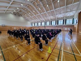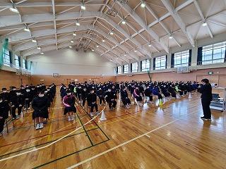 2023年2月6日 19時07分今日の放課後、2年学年プロ委を中心としたメンバーが体育館でリハーサルを行いました。明日は校区内の3小学校と校区外の希望する児童が午後から来校し、新入生説明会に参加します。4月から同級生になる約180名が勢ぞろい。